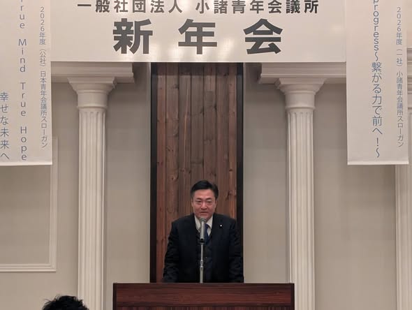 小諸市の「音羽」にて開催された、一般社団法人小諸青年会議所(小諸JC)の新年会に出席し、一言ご挨拶をさせていただきました。
