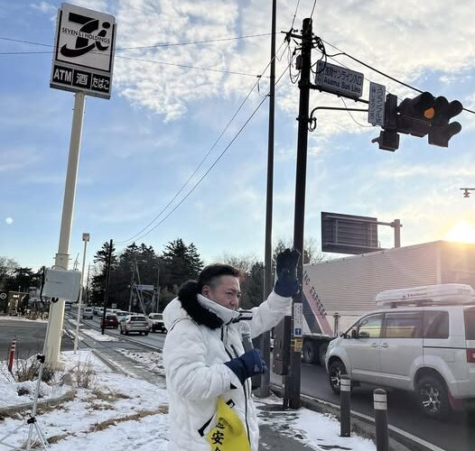 今朝は 軽井沢・浅間サンライン入口交差点 から活動を始めました。